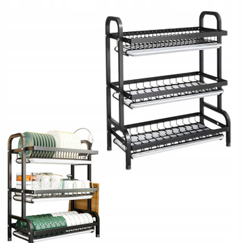 SUSZARKA DO NACZYŃ TRZYPOZIOMOWA czarna stal nierdzewna składana ociekacz
