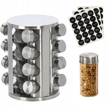 PRZYPRAWNIK SREBRNY 16 SŁOICZKÓW z naklejkami elegancki prezent organizer