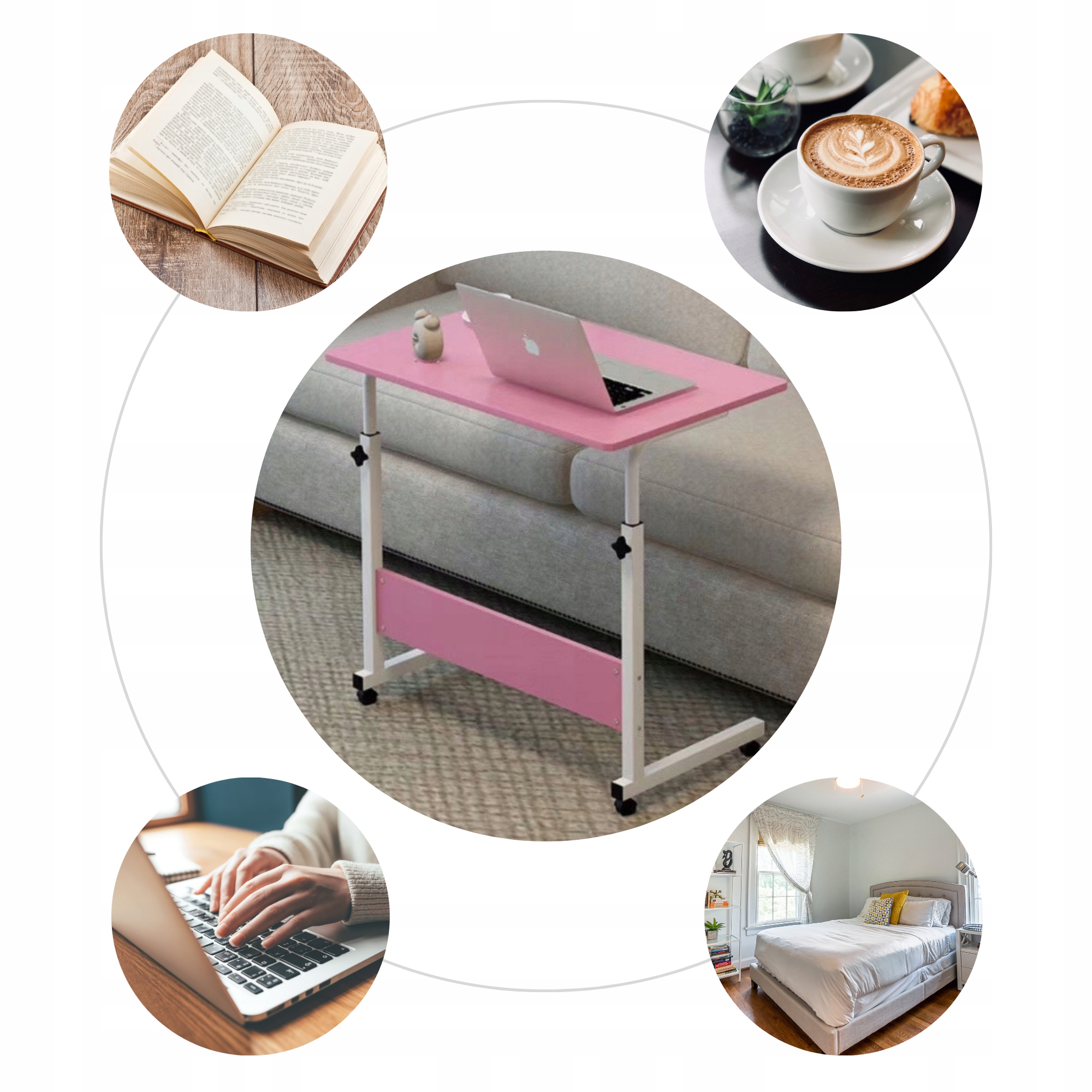 Eleganckie MOBILNE BIURKO REGULOWANE stolik na kółkach POD LAPTOP różowy