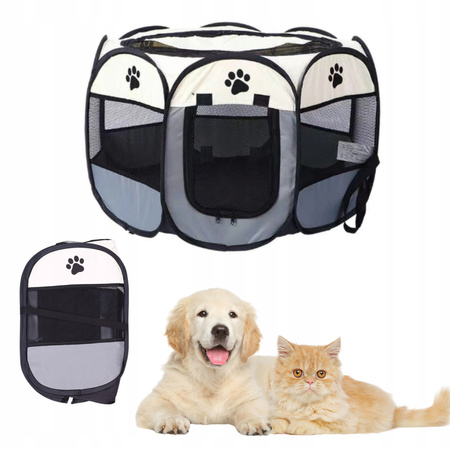 Zapewnij swojemu zwierzakowi komfortowe i bezpieczne miejsce do odpoczynku lub zabawy dzięki naszemu składanemu kojcowi dla psa lub kota. Wykonany z trwałej tkaniny Oxford i siatki poliestrowej, kojec doskonale sprawdzi się zarówno w domu, jak i na świeżym powietrzu.