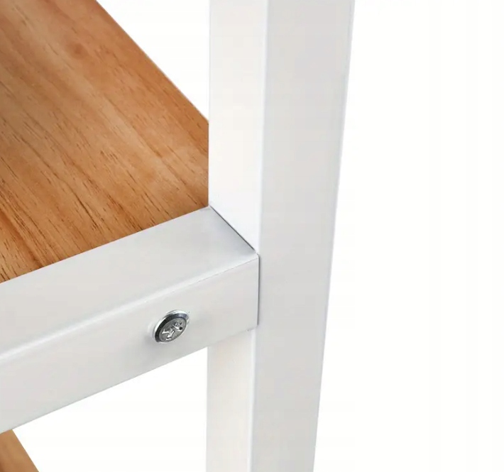 - Materiał blatu i półek: płyta MDF (drewno w kolorze jasnego dębu)
