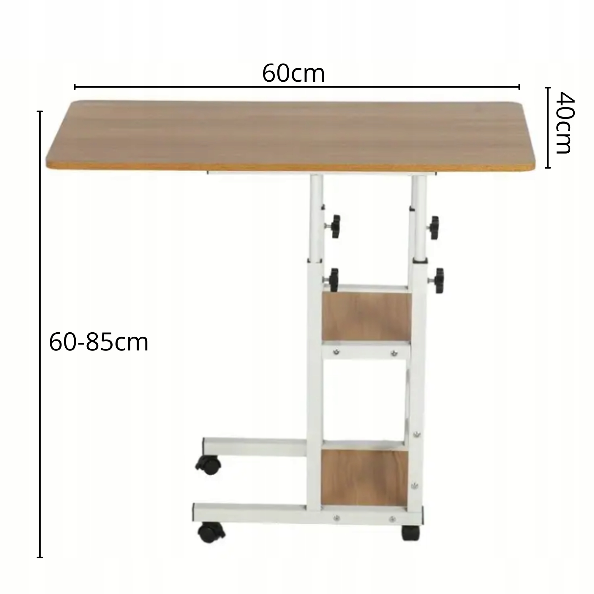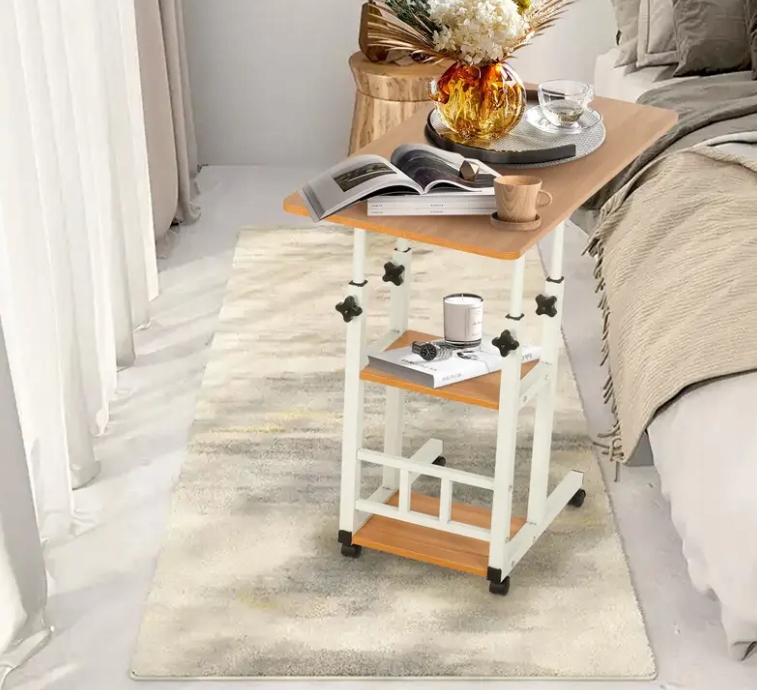 Mobilny Stolik Przyłóżkowy z Regulacją Wysokości i Półkami – Idealny do Laptopa, Śniadania, Nauki i Czytania