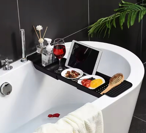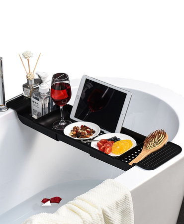 PÓŁKA na wannę łazienkowy organizer rozsuwany taca deska REGULOWANA czarna