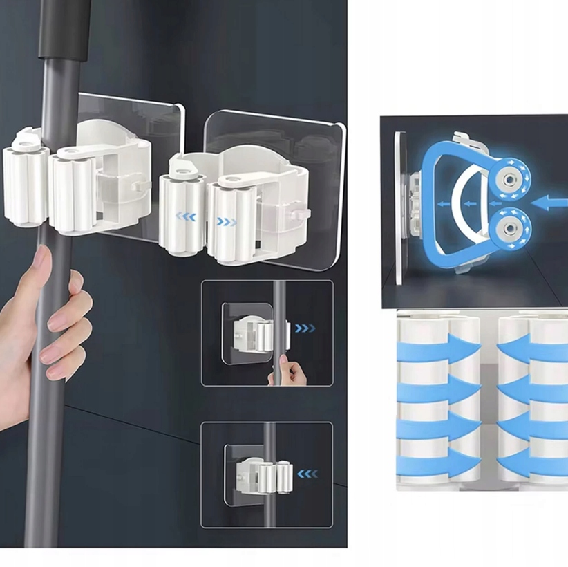 UCHWYT ŚCIENNY ZACISKOWY NA MOPY, MIOTŁY, SZCZOTKI I NARZĘDZIA – SAMOPRZYLEPNY