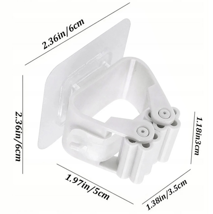 Funkcjonalny uchwyt ścienny z mechanizmem zaciskowym, zaprojektowany z myślą o wygodnej organizacji przestrzeni w domu, garażu, piwnicy lub warsztacie. Umożliwia estetyczne i bezpieczne przechowywanie akcesoriów sprzątających oraz narzędzi ręcznych.