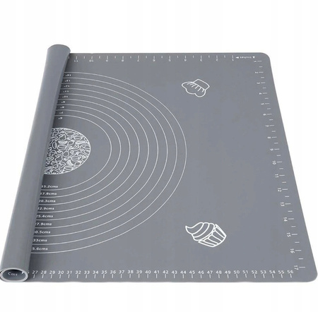 SILIKONOWA STOLNICA mata kuchenna szara do pizzy ciasta z miarkami