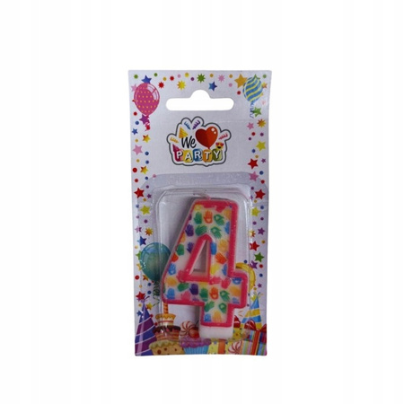 ŚWIECZKA URODZINOWA NA TORT w kształcie cyfry 4 kolorowa 7cm