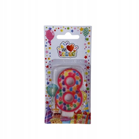 ŚWIECZKA URODZINOWA NA TORT w kształcie cyfry 8 kolorowa 7cm