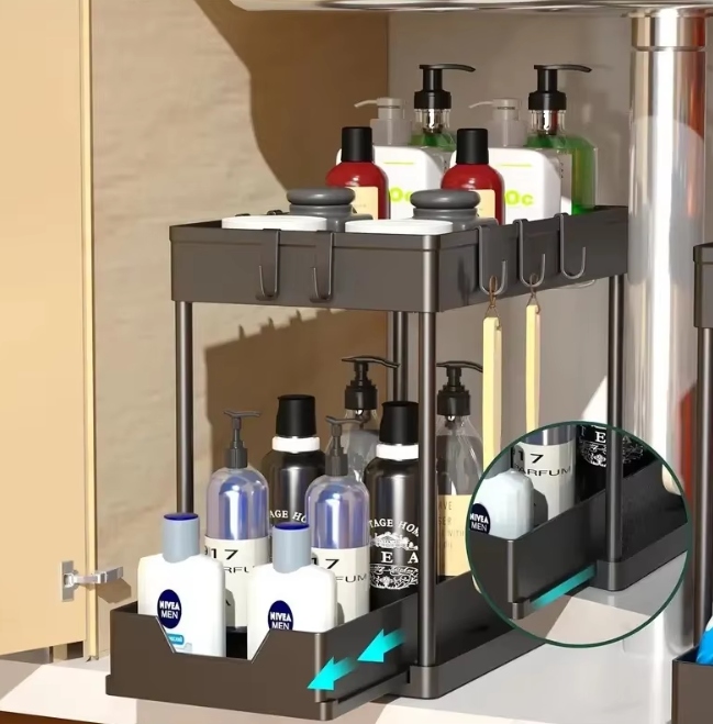 Funkcjonalny, solidny i nowocześnie zaprojektowany regał–organizer, który pozwala w prosty sposób uporządkować przestrzeń nawet w trudno dostępnych miejscach. Idealnie sprawdzi się w szafkach, na blatach oraz w pomieszczeniach, gdzie liczy się każdy centymetr. Dzięki wysuwanej dolnej półce zyskujesz szybki i wygodny dostęp do przechowywanych przedmiotów bez konieczności ich wyjmowania.