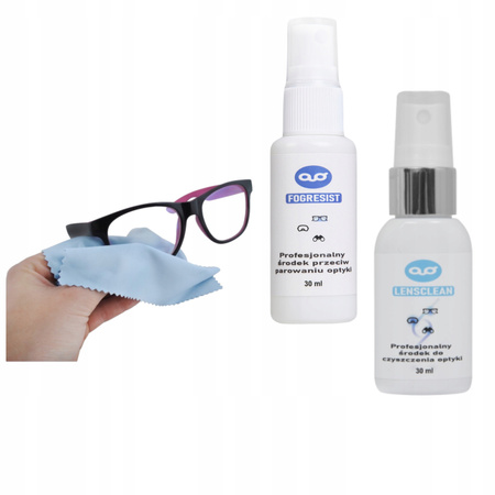ŚRODEK PRZECIW PAROWANIU OKULARÓW 30ml + ŚRODEK DO CZYSZCZENIA 30ml + ŚCIERECZKI Z MIKROFIBRY