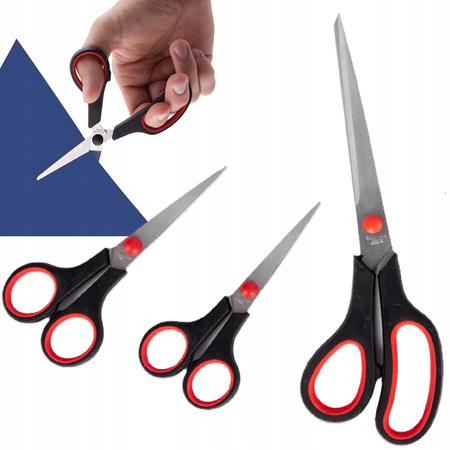 Zestaw zawiera trzy nożyczki w trzech rozmiarach, co czyni go idealnym do różnorodnych zadań w biurze, szkole, czy w domu.